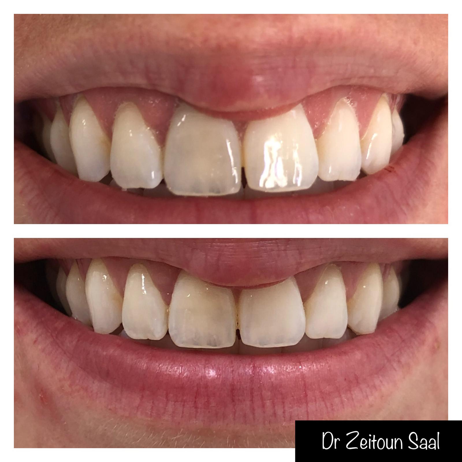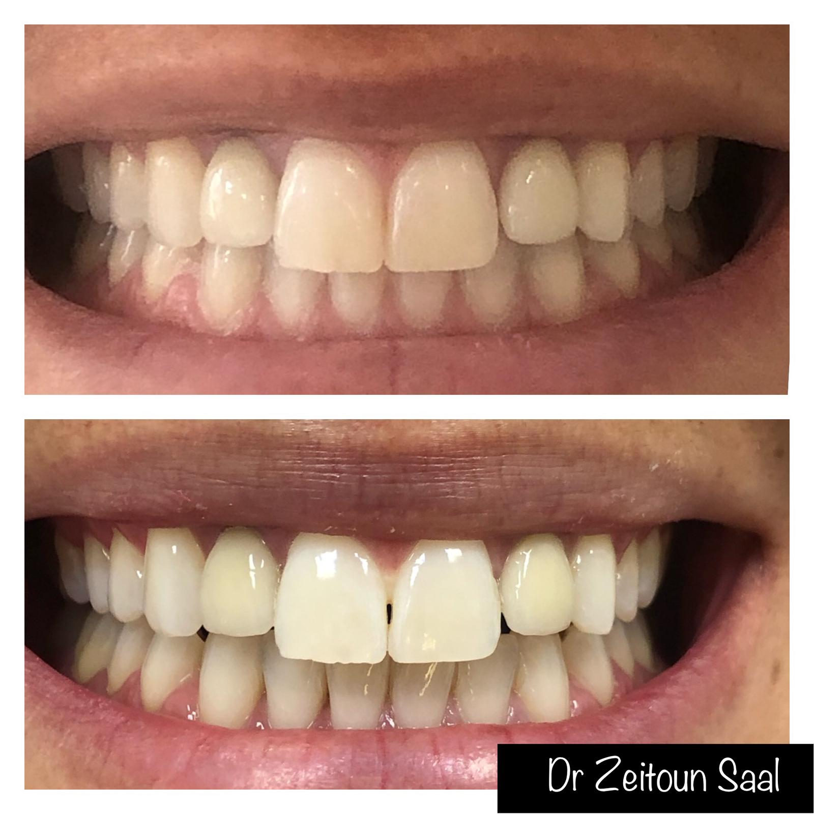 Il faut savoir qu’il s’agit davantage d’un éclaircissement de la teinte naturelle de la dent. Nous traitons les cas sévères de dyschromie (atteinte profonde de la teinte de l’émail liée souvent à la prise de médicaments lors de la formation de la dent) par la technique des facettes dentaires.
